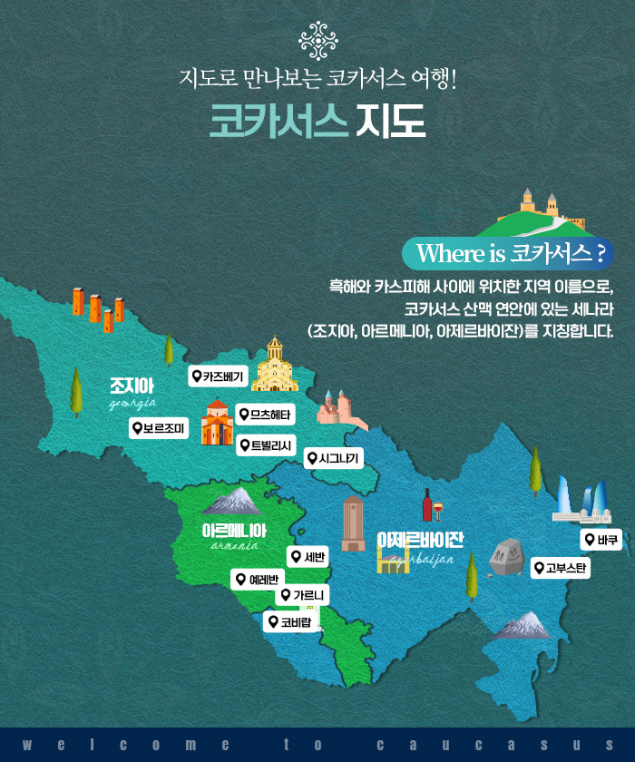 ※ 식당 및 메뉴, 방문 와이너리 등은 현지 상황에 따라 변경될 수 있습니다.※ 상기 이미지는 예시 이미지입니다. ■ 기타☑ 여행 계약금은 예약 후 3일 이내, 1인 500만원씩 입금 요청 드립니다.☑ 전일정 45인승 대형버스 탑승 ☑ 전일정 한국인 가이드 또는 국가별 로컬 가이드 동행 ※ 아제르바이잔은 한국어 가능 로컬 가이드가 안내드릴 수 있습니다. ☑ 10명 이상 출발 시 한국에서부터 전문투어리더가 동행합니다.☑ 일정표에 사용된 이미지는 모두 예시 이미지 입니다.☑ 현지 사정에 따라 숙박 도시의 순서 또는 주변의 다른 도시로 변경 될 수 있습니다.☑ 코카서스 전세기 항공편 기내식은 출발편/도착편 모두 한식 메뉴는 제공 되지 않습니다. (ex. 비빔밥, 낙지덮밥) 일반석 2번째 기내식은 콜드밀로 제공 됩니다. (ex. 샌드위치 등 간편식)☑ 연계 상품(일반석 탑승 상품 등)과 함께 행사 진행됩니다.☑ 행사 인원은 최대 26~28명 예정입니다.☑ 가이드의 알찬 설명을 위한 개인용 수신기 제공